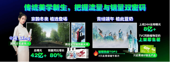 许多案例或资源的切入点是将中国传统文化、国风文化与 AI 相皆集。举例,北京冬奥会时,网易为植选豆奶打造的编造东谈主Ling & 京剧行家裘继戎的跨界大片,用跨次元的样貌带来了品牌和销量的双丰充;亦然因为此次互助,端午节点又再次助力植选品牌联袂只此青绿舞团,让品牌立场与传统文化完好意思和会,产出了绚烂华好意思的创意大片,完了了口碑的飞跃,同期也将本次IP联名礼盒打变成了上架即售罄的爆款居品。固然这两个案例的底色是传统文化,但愚弄了编造东谈主和CG动效的加执,让品牌领有了内质的新意。