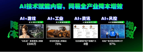 就网易而言,在近两年的 AI 实施里,将其用于进步企业效果、增强客户就业生效,如增多游戏中的 AIGC 剧情走向、增多资讯跟贴陪护功能、AIGC音视频本色审核提效等。站在企业角度上看,在居品或就业干预阑珊期时,AI不错作念到降本增效,致使也不错找到新的增长弧线。