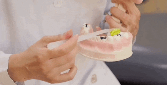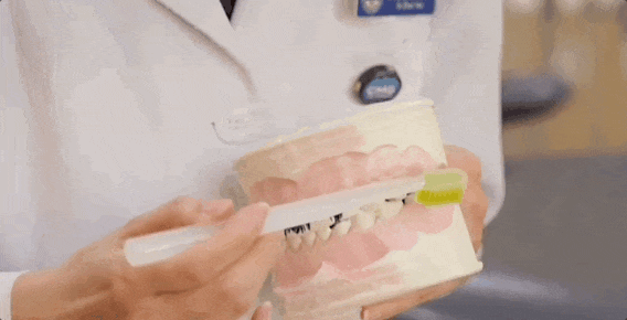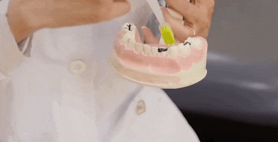 刷牙齿外侧面时,接管画圈的样式操作,另一侧外侧面同理,这种刷牙算作比较水平震颤法更易掌持;